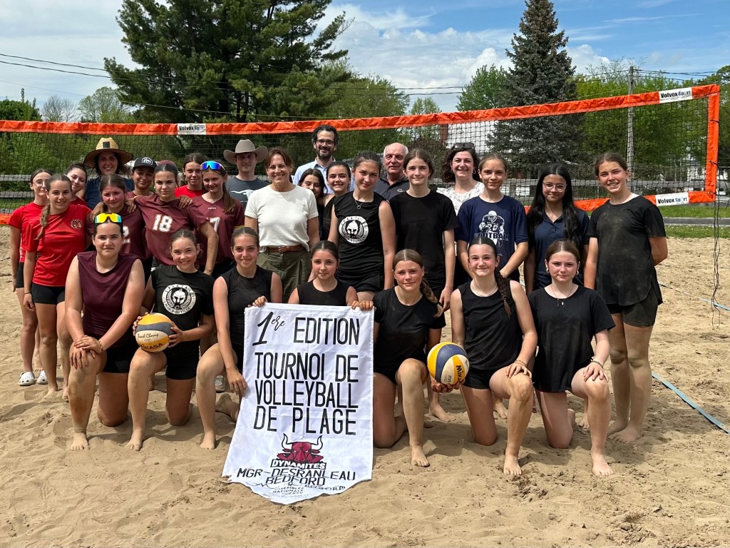 Photo ci-haut : Le 16 mai 2025, des élèves de 1re et 2e secondaire des écoles Monseigneur-Desranleau et Jean-Jacques-Bertrand ont participé à un tournoi amical de volleyball de plage qui s’est tenu à Bedford sur le terrain de la Société d’agriculture de Missisquoi. La députée et ministre Isabelle Charest était présente pour remettre les médailles aux jeunes athlètes. Cet événement s’inscrit parmi les nombreux projets financés dans le cadre de l’appel de projets lancé par Mme Charest pour promouvoir les saines habitudes de vie et la pratique du sport chez les élèves.